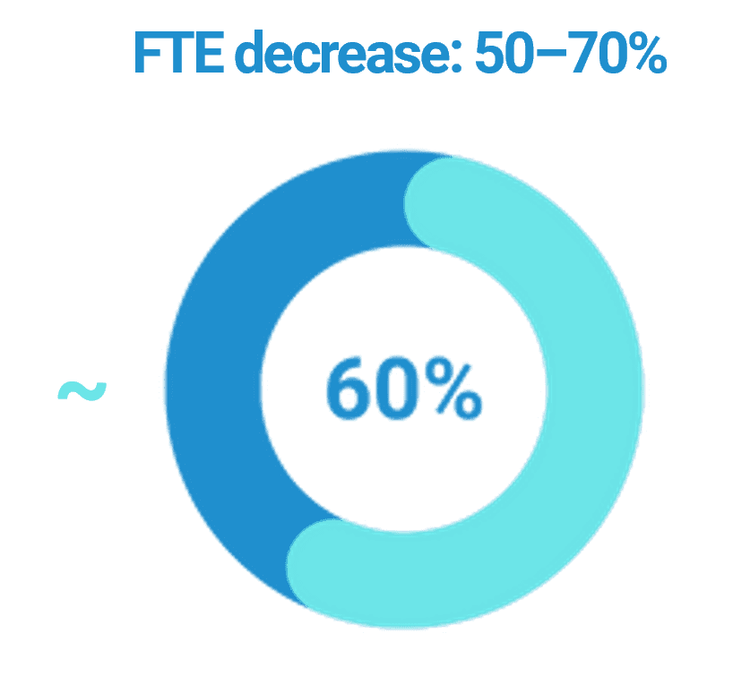 FTE decrease: 50–70% decrease in manual subtitle timing and audio engineering workload